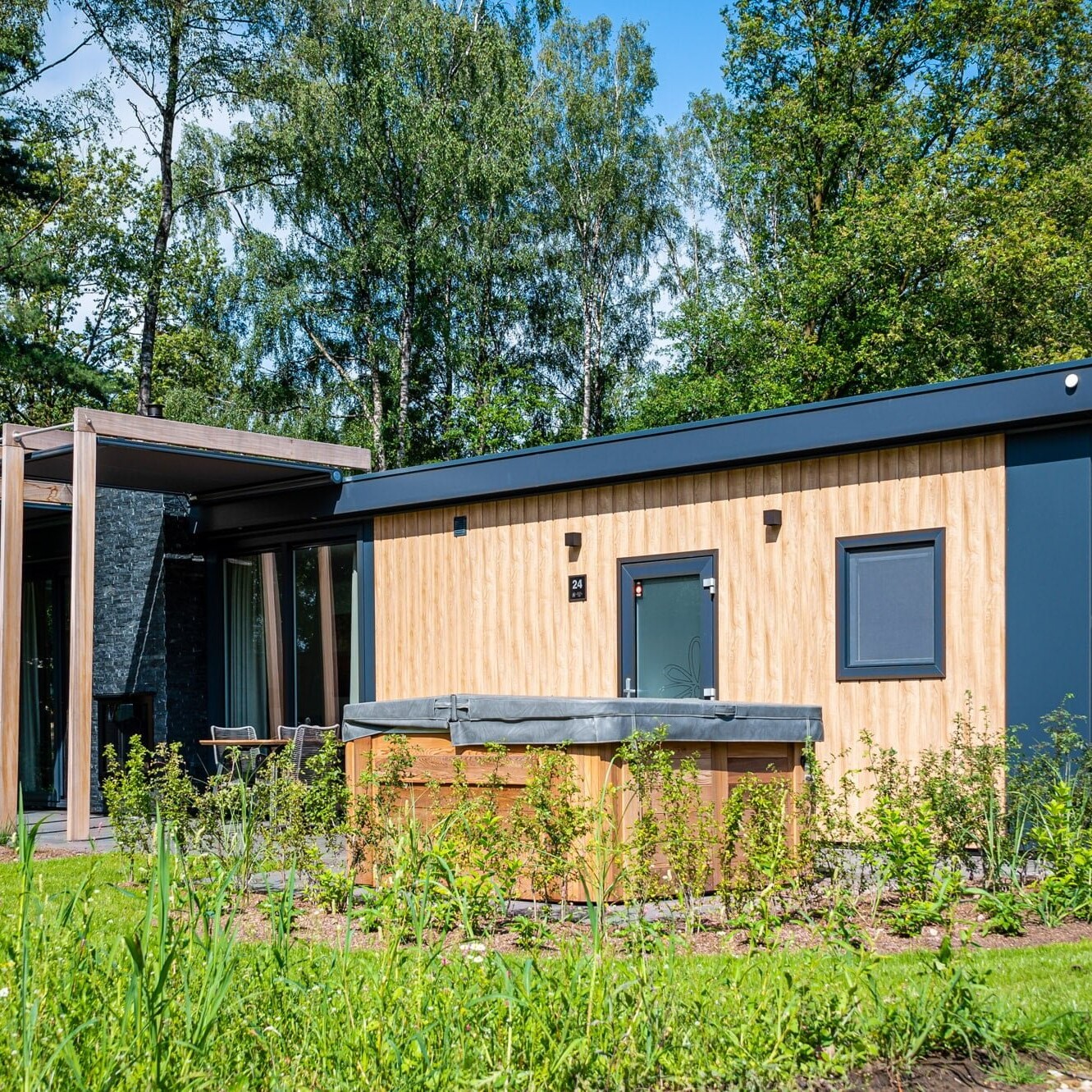 - Oppervlak lodge 70 m² met aanvullend 30 m² aangelegd terras